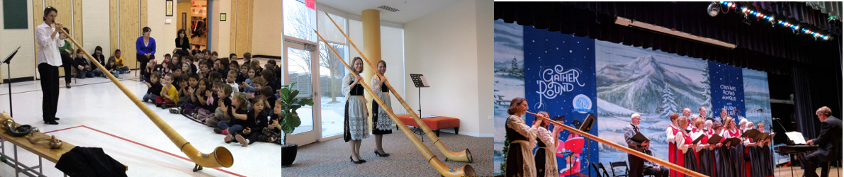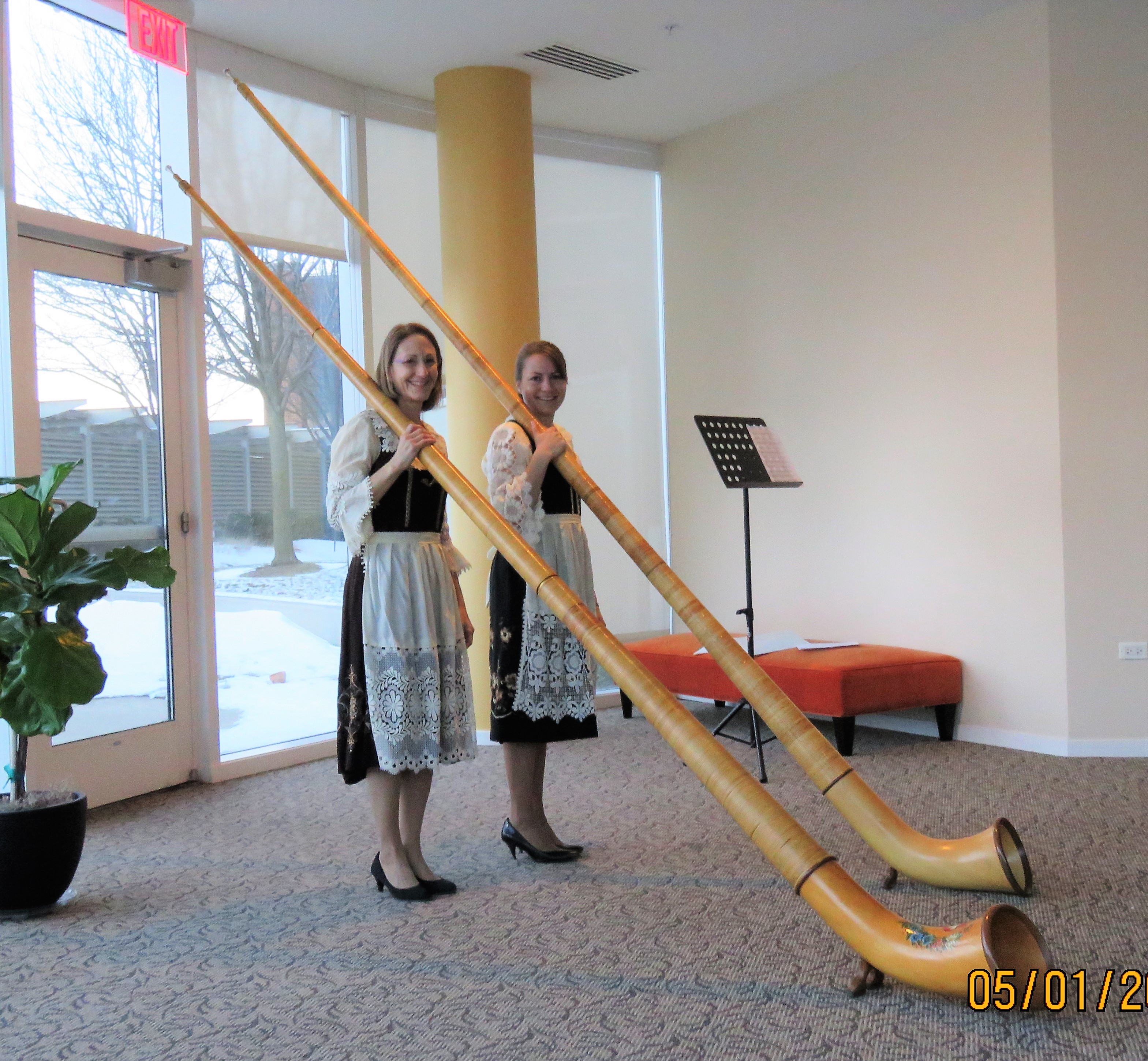 Those alphorns have led me on some interesting adventures: performing with the Austrian Mixed Choir at Navy Pier and the Museum of Science and Industry, and a live ad campaign for the Ricola Company. They have also been intriguing additions to horn choir concerts, orchestra benefit programs and school demonstrations. They have also been used in presentations for MENSA and for a local chapter of the American Society of Mechanical Engineers.